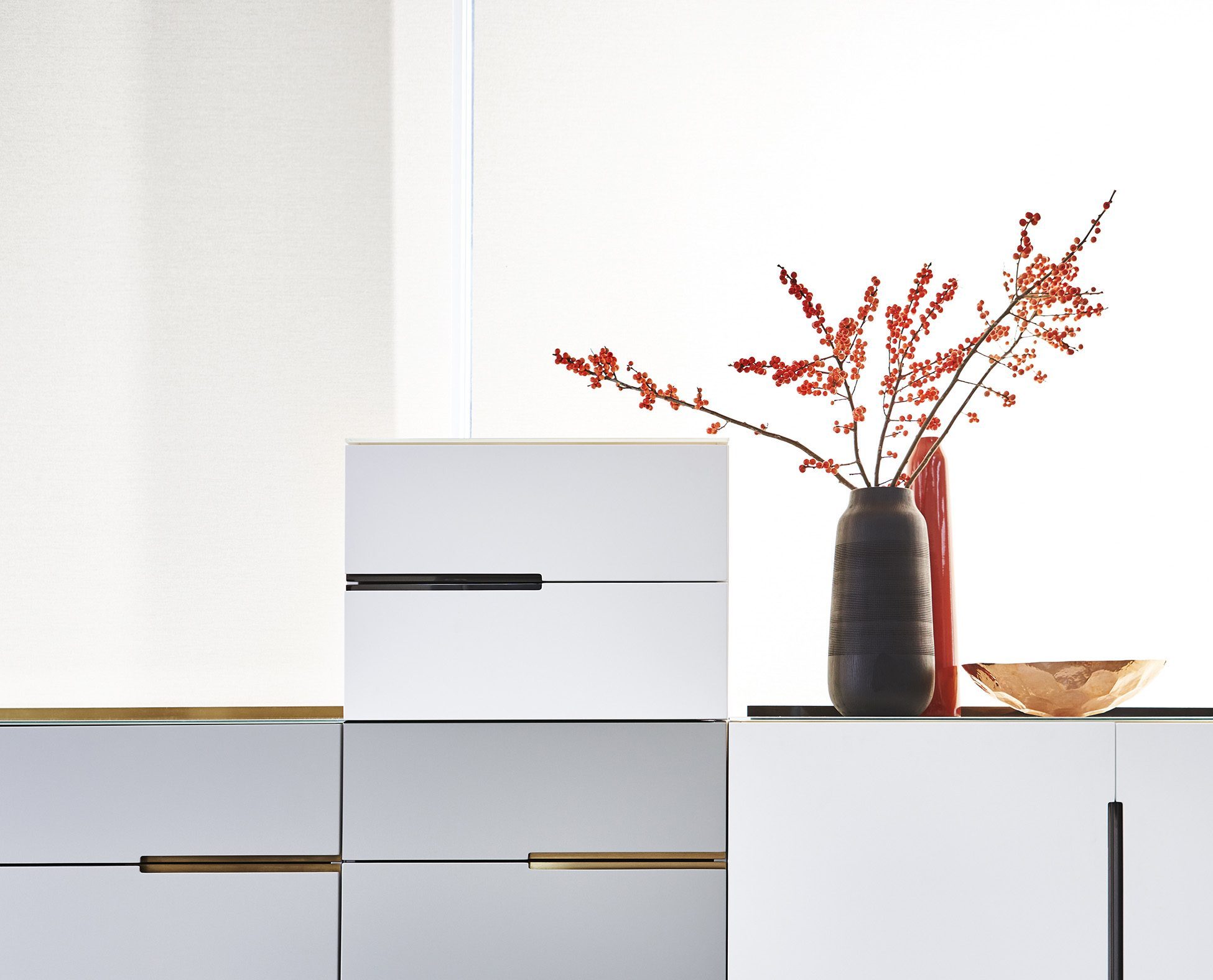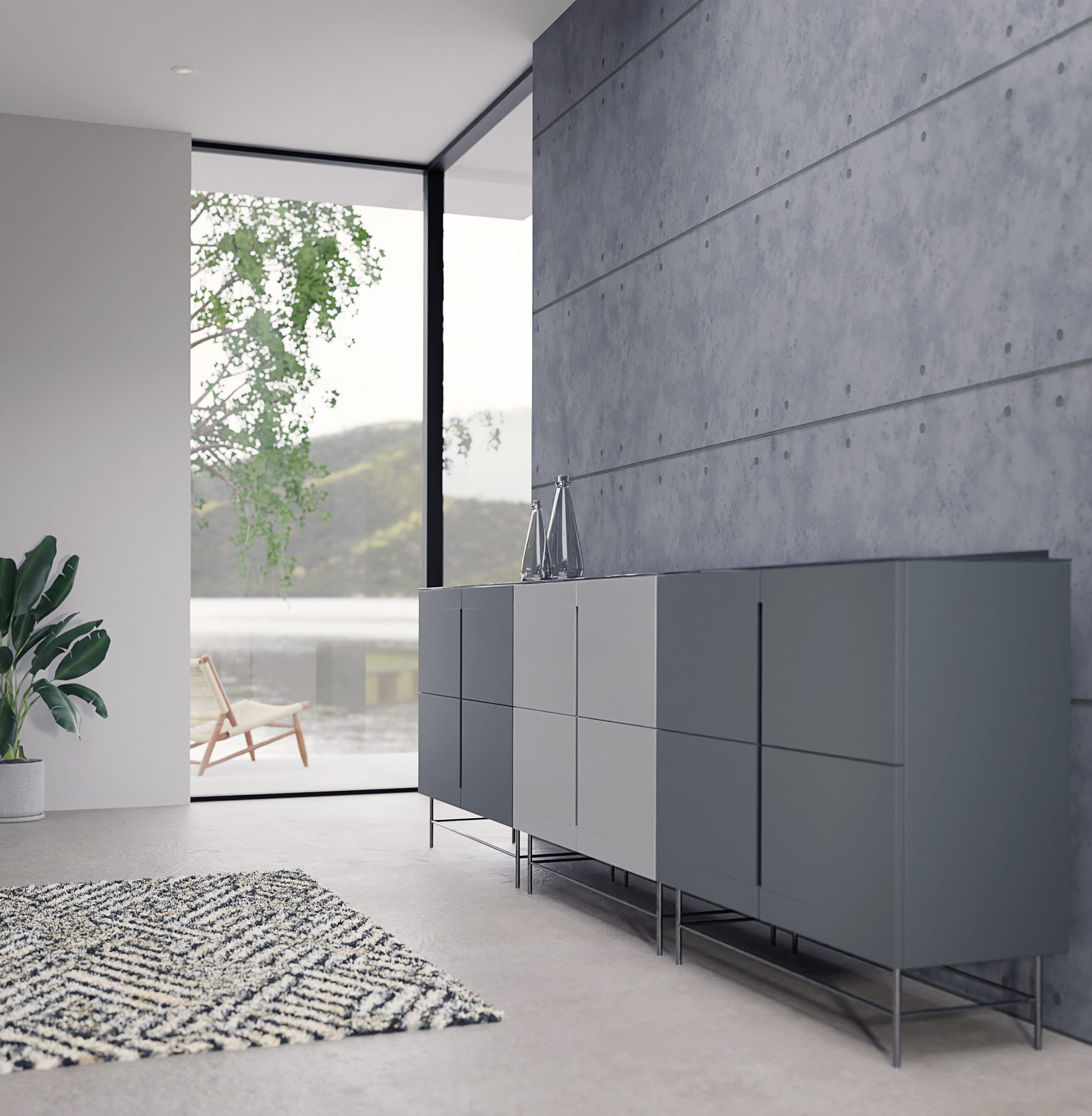 Contemporary modular cabinet system. Offering options in size and carcass and metal base colour combinations with ingenious stacking design. Glass tops to provide a tough…