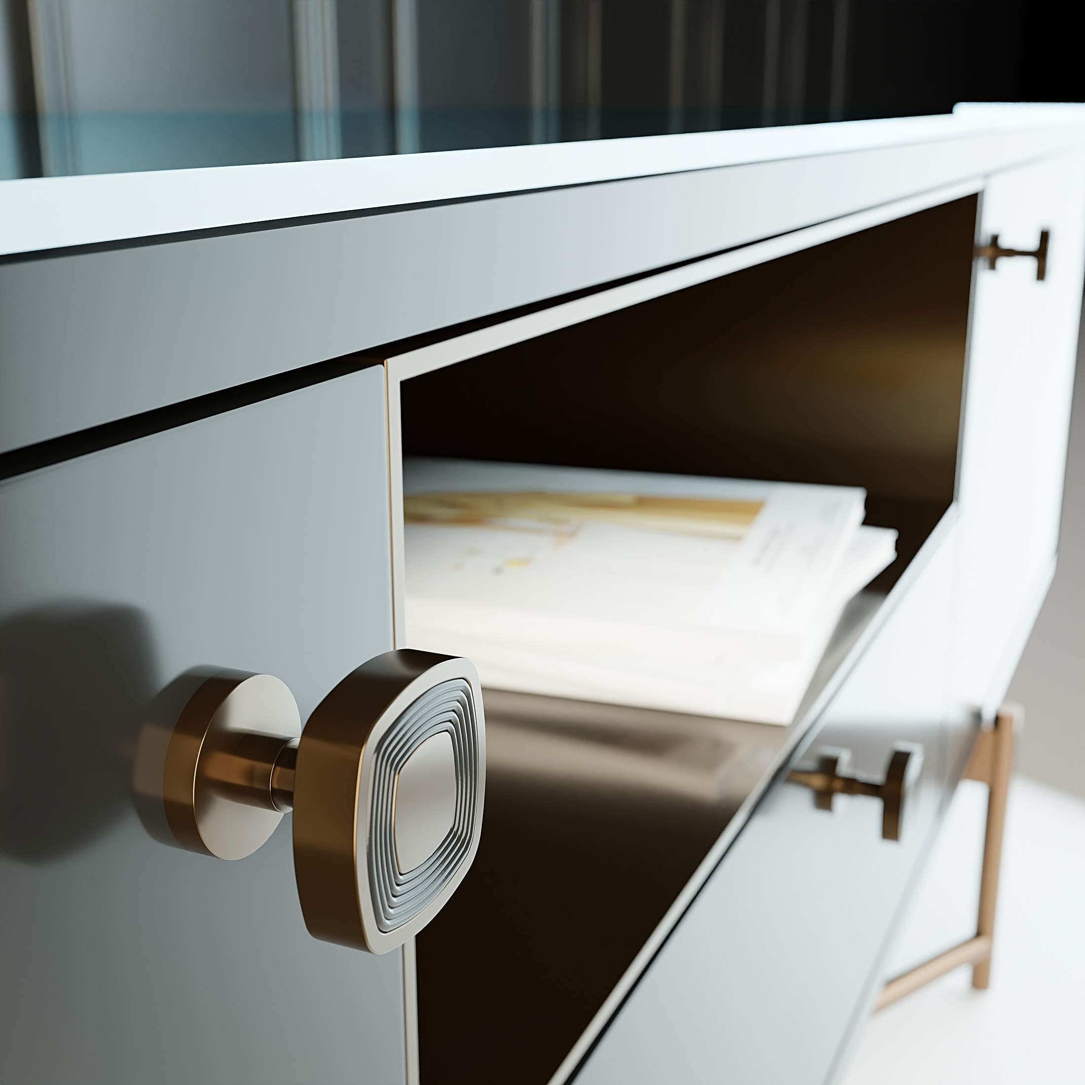 Door furniture CGI illustration – both product detail and on furniture in interior settings. 3D modelled with easy material and viewpoint options.